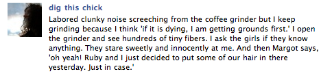 So that was Friday. Pretty much the whole day actually. Saturday morning I made my way to the kitchen for coffee and the grinder was all ferkockteh.